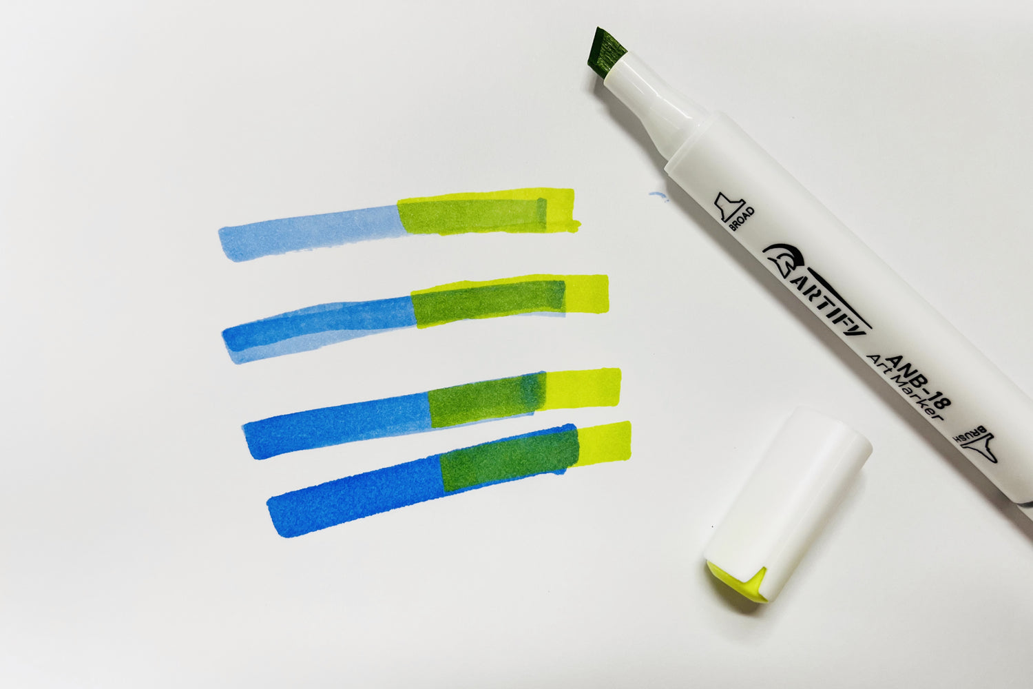 I supposed I should have mentioned paper before we got started. Yes, you can play with this on regular paper but if you want to really know how these are going to perform when you are drawing, you will have to practice on bleed-proof paper. But you don’t want paper that will absorb so much ink that it makes coloring hard. For Artify alcohol markers we like papers that weigh 70-250 gsm. That’s’ another topic entirely. Let’s get back to our layers!