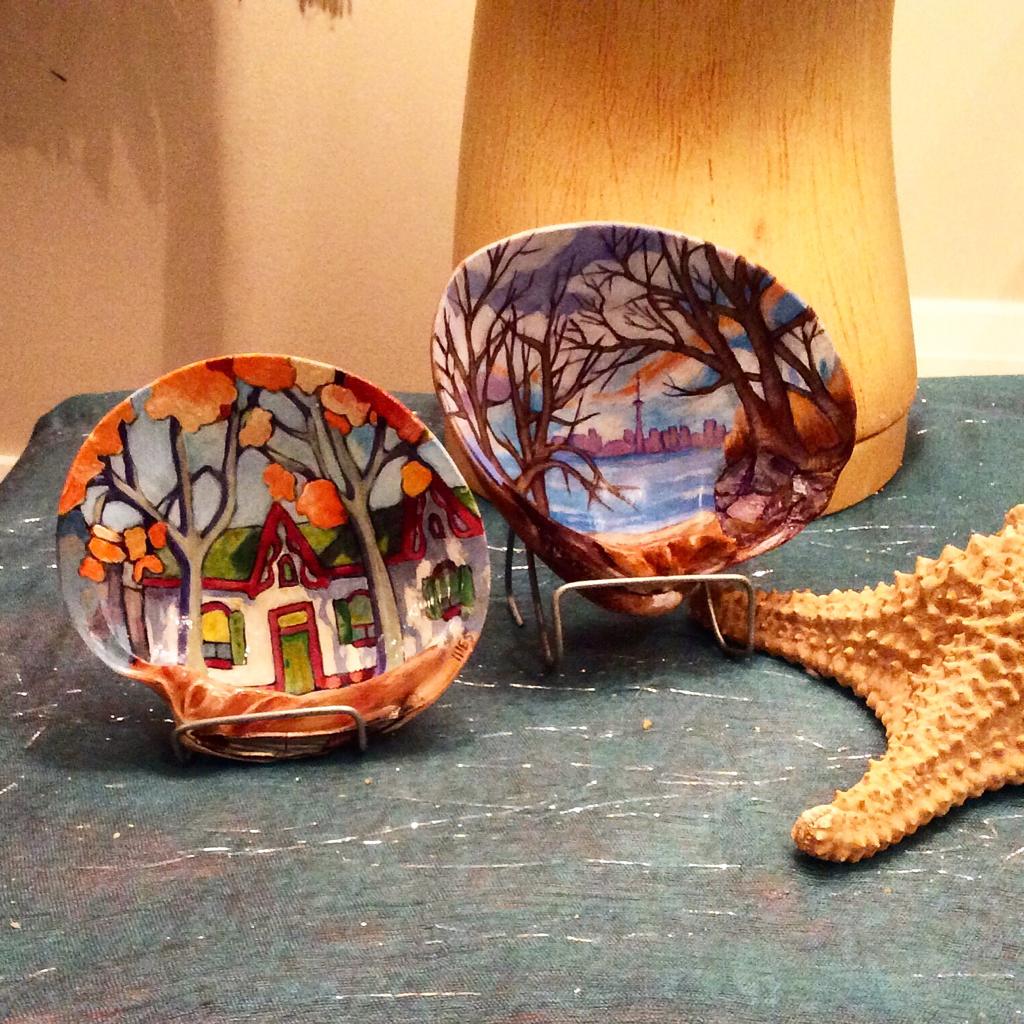 The answer is actually quite simple. She took me on a tour of some shells she has painted recently in her home in Toronto.