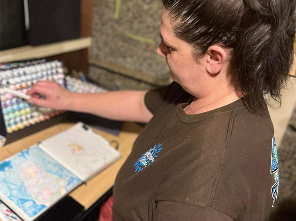 Today that son is 24 years old and they are still close. This tells me her time was not wasted. But for the past five years Stephanie has been battling cancer – twice! Her hands were too shaky to paint, she thought practicing art would help her distract herself. Her pivotal moment finally came when she discovered alcohol markers. On a personal note, I’m proud to say she is a big fan of Artify markers specifically, but we will let Stephanie tell you more about that later.