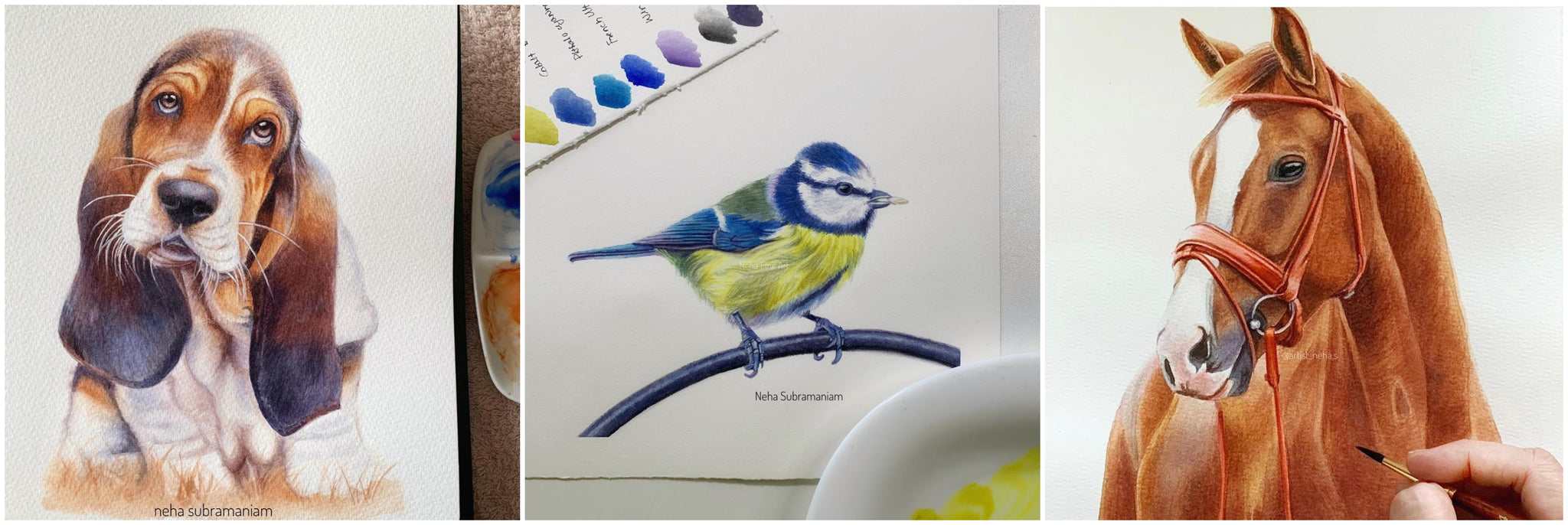 2017 arrived and something new also came for this life-long artist. Watercolor realism. When Neha told me this I was surprised, an artist who was immersed all her life in art found a new medium and in a few short years has become so proficient at it!