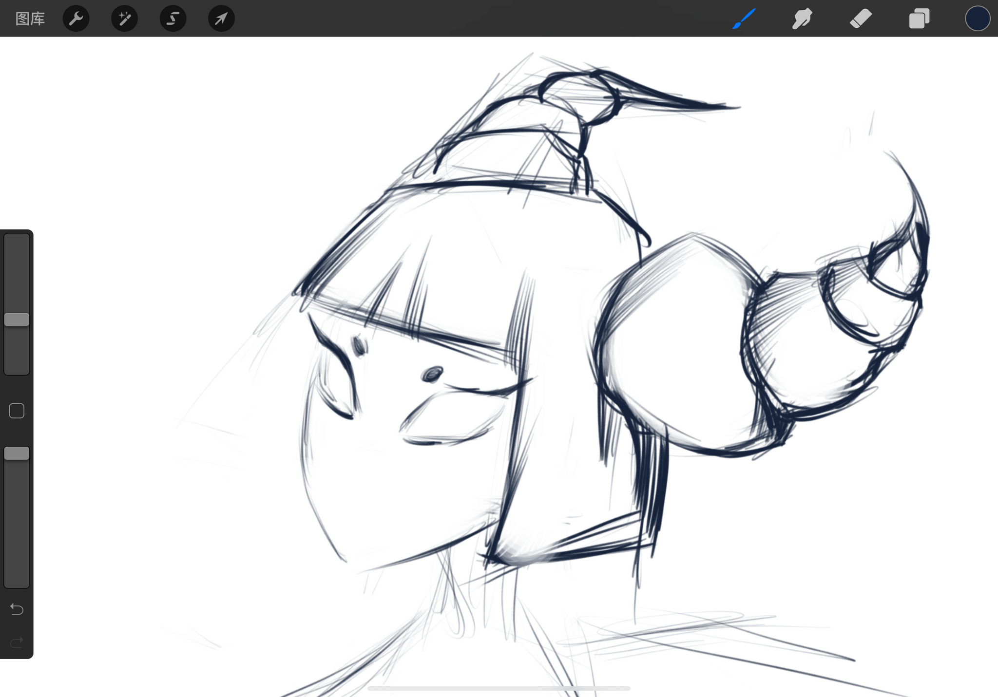 Can you see how adding some detail has changed the shape already? Don’t worry about your initial sketch, that was just an outline for you to follow loosely. These detail lines we are drawing now are what will really bring this character to life. For instance, when I did the first sketch of this one, I was imagining an ugly old woman; but as I added detail, I subconsciously detailed a pretty face. Obviously, my inner self wanted to draw a beautiful girl, that’s okay with me because I allow myself to be at the mercy of my pens and brushes. The creation process is not rigid, it is fluid and you have to allow yourself to go with it. If you fight it, you won’t be happy with the results. So here we have a young, pretty face instead of an old hag. Let’s continue.