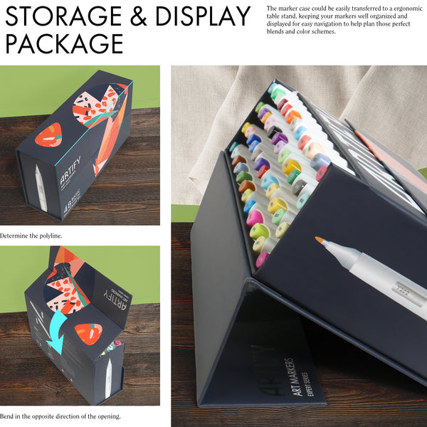 STORAGE & DISPLAY PACKAGE The marker case could be easily transferred to a ergonomic table stand, keeping your markers well organized and displayed for easy navigation to help plan those perfect blends and color schemes.